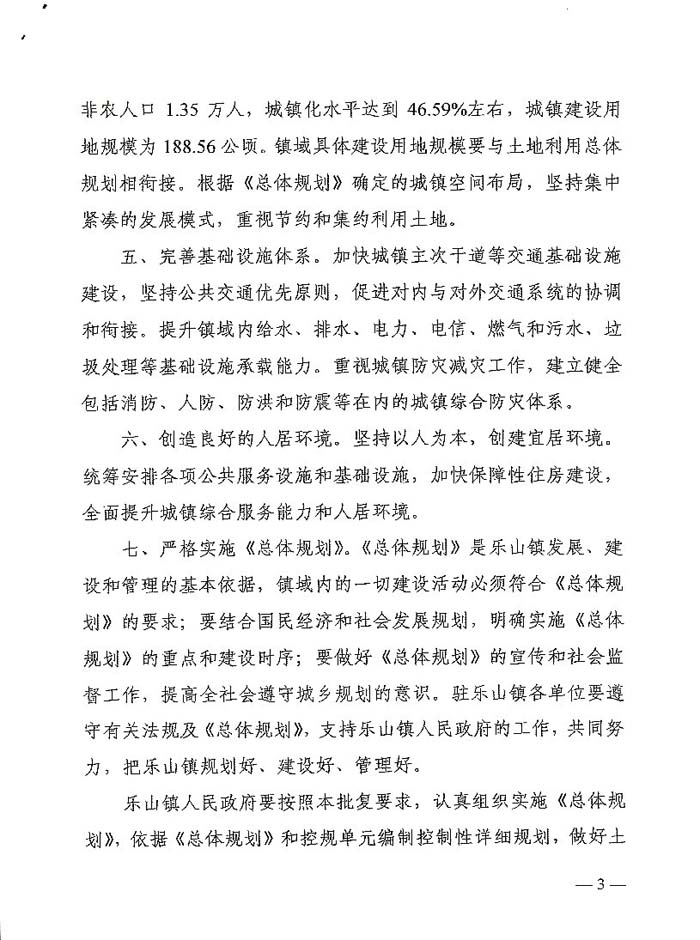 长春市人民政府关于长春市朝阳区乐山镇总体规划(2011-2020)的批复