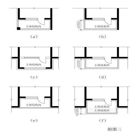 1、主体结构外阳台进深不得超出2.00米(取阳台围护结构外围至外墙外缘的最大垂直距离),其单个水平投影面积不得超出10.00平方米;住宅套型内主体结构外阳台总面积不得超出套型建筑面积的10%(附图三)。