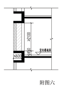 5、窗台与室内楼地面高差在0.45米以下且结构净高在2.10米及以上的凸(飘)窗,应按其维护结构外围水平面积计算1/2面积。凸(飘)窗凸出建筑外墙面不得超过0.60米,并应在申报方案文本中提供凸(飘)窗详图(附图六)。