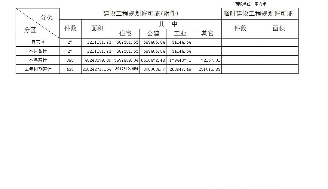 2016年10月份《建设工程规划许可证》核发统计