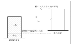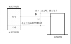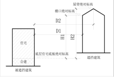 (二)遮挡建筑为平屋面时,按照遮挡建筑檐口或者女儿墙顶面绝对标高与被遮挡建筑底层底板绝对标高的差值计算。