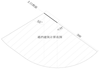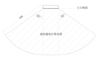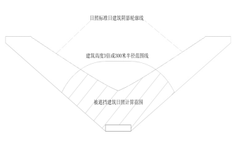 第十六条遮挡建筑的日照计算范位按照下列规定确定:以被遮挡建筑主日照面上任意点为圆心,以300米为半径确定的范围为遮挡建筑的日照计算范围(如附图7所示)。