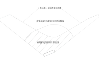 第十五条被遮挡建筑的日照计算范围按照下列规定确定:以拟建遮挡建筑外墙轮廓线上任意点为圆心,以拟建遮挡建筑高度的3倍为半径(最大半径≤300米)确定的范围与拟建遮挡建筑日照标准日的建筑日照阴影范围重叠部分为被遮挡建筑的日照计算范围(如附图6所示)。