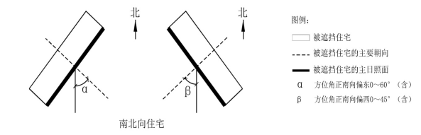 (五)南北向住宅,是指主要朝向的方位角在正南向偏东0-60度(含)与正南向偏西0-45度(含)之间的条式住宅;