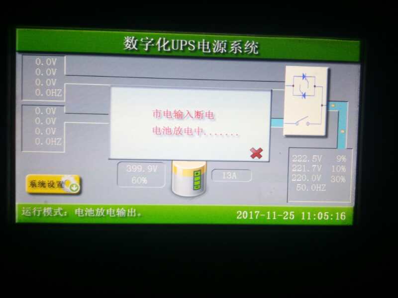 到达现场后,经查实是楼外市电故障。断电后,机房的不间断电源系统已正常启动,各设备运转正常。