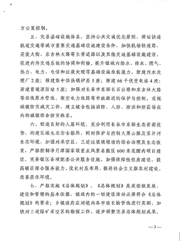 长春市人民政府关于英俊镇总体规划(2011-2020)的批复