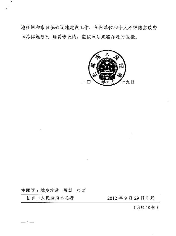 长春市人民政府关于鹿乡镇总体规划(2011-2020)的批复