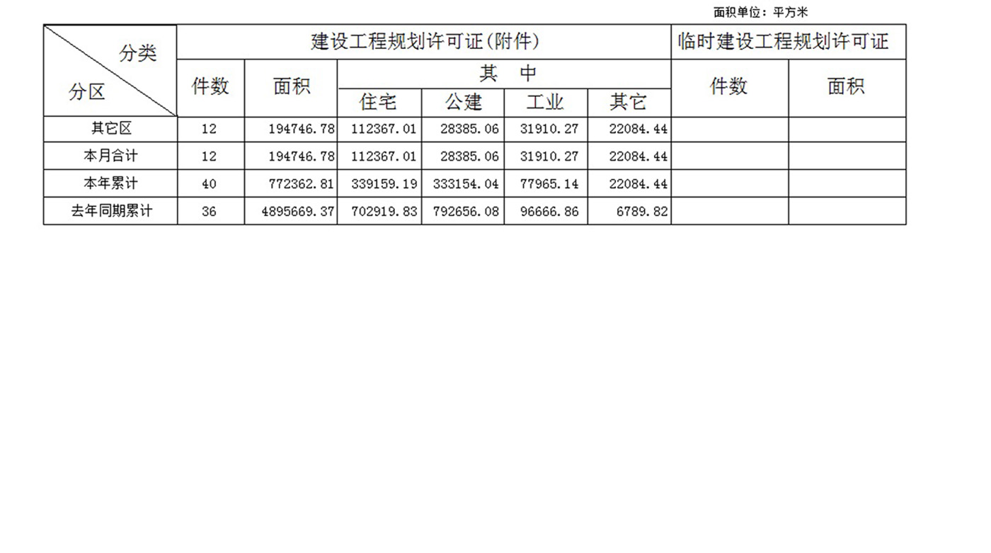 2017年1月份《建设工程规划许可证》核发统计